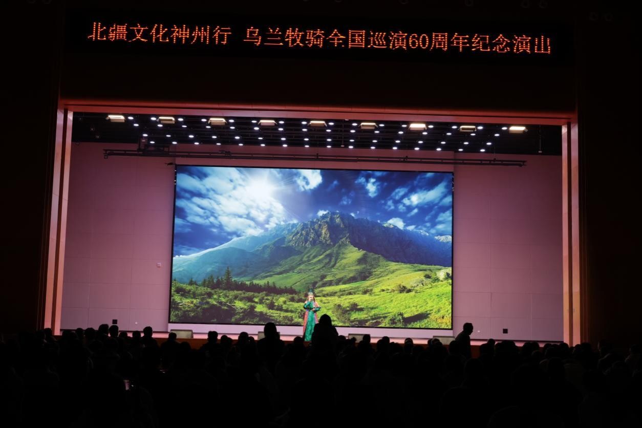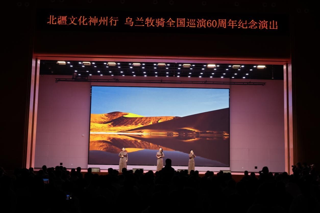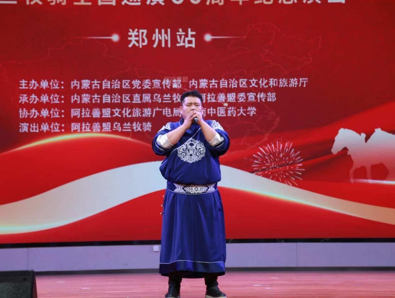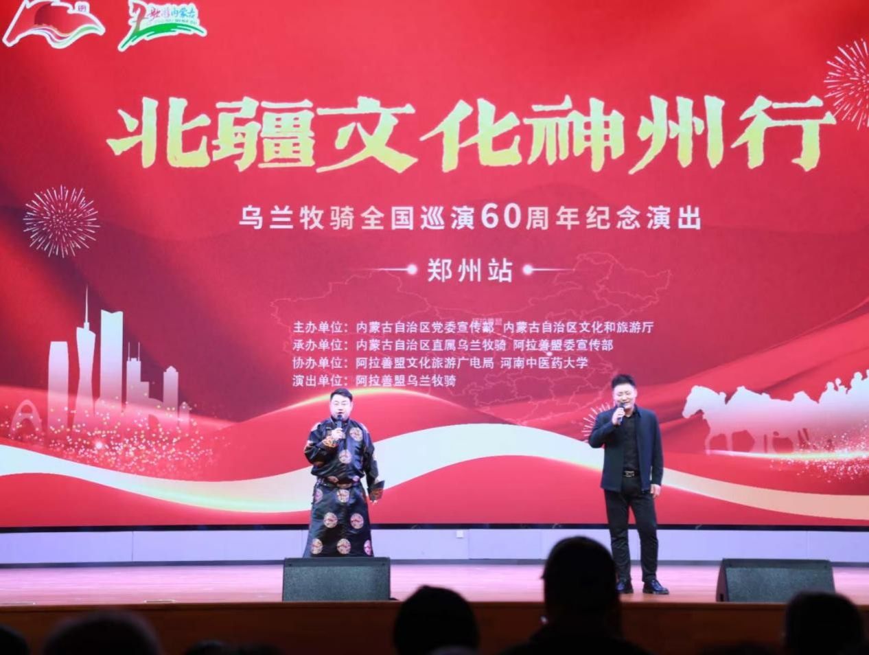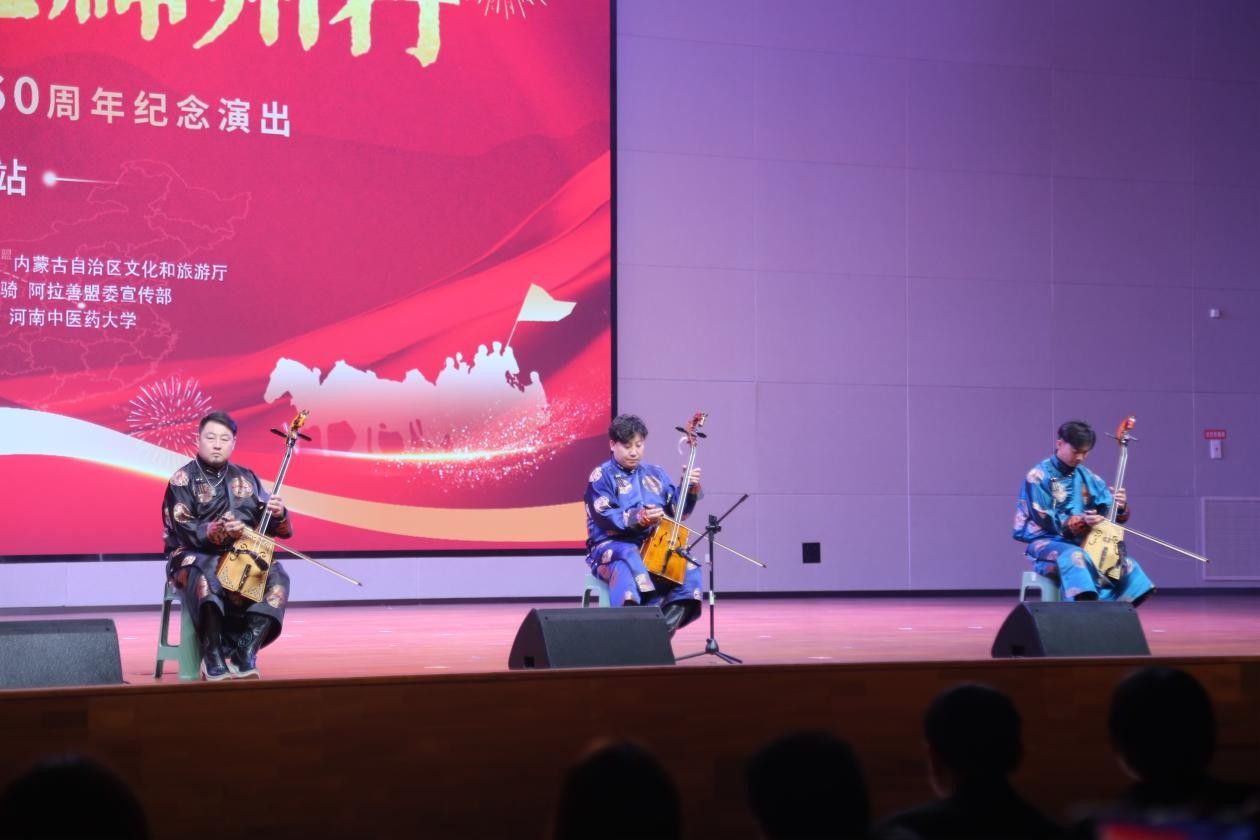 本网讯(文/图 高山)马蹄踏响的韵律似仍在耳畔萦绕,草原浸润的芬芳已悄然飘落在中原大地。2025年11月6日,我校体育馆内灯火璀璨、暖意融融,由内蒙古自治区党委宣传部内蒙古自治区文化和旅游厅主办的“乌兰牧骑全国巡演60周年纪念演出”在此盛大启幕。全校师生代表欢聚一堂,共赴这场融合民族风情与时代精神的艺术盛宴,在歌声与舞姿中感受乌兰牧骑“红色文艺轻骑兵”的独特魅力,共上一堂生动的“高雅艺术进校园”美育实践课。