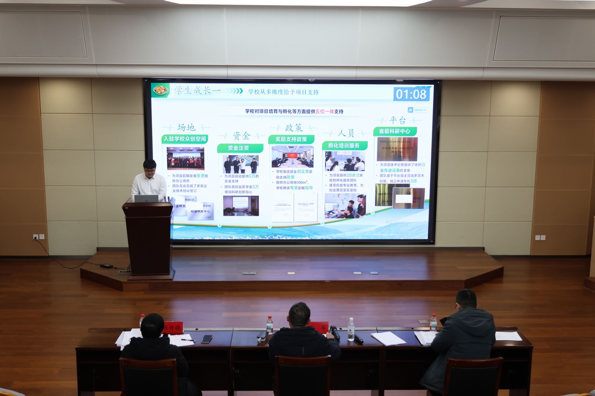 决赛现场,各参赛团队依次展示了涵盖中医智能诊疗、康复机械设备、中药种植产品、文旅融合项目等多个方向的创新创业项目。这些项目既立足专业特色,又紧密呼应社会需求,充分展现了同学们扎实的专业功底与跨学科创新能力。